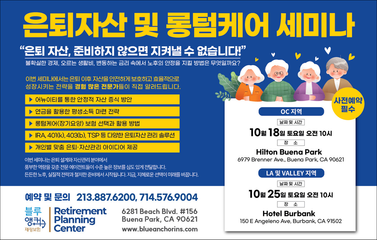 은퇴 자산 및 관리 & 롱텀케어 세미나 안내 기사 - 2025년 10월 09일 한국 일보