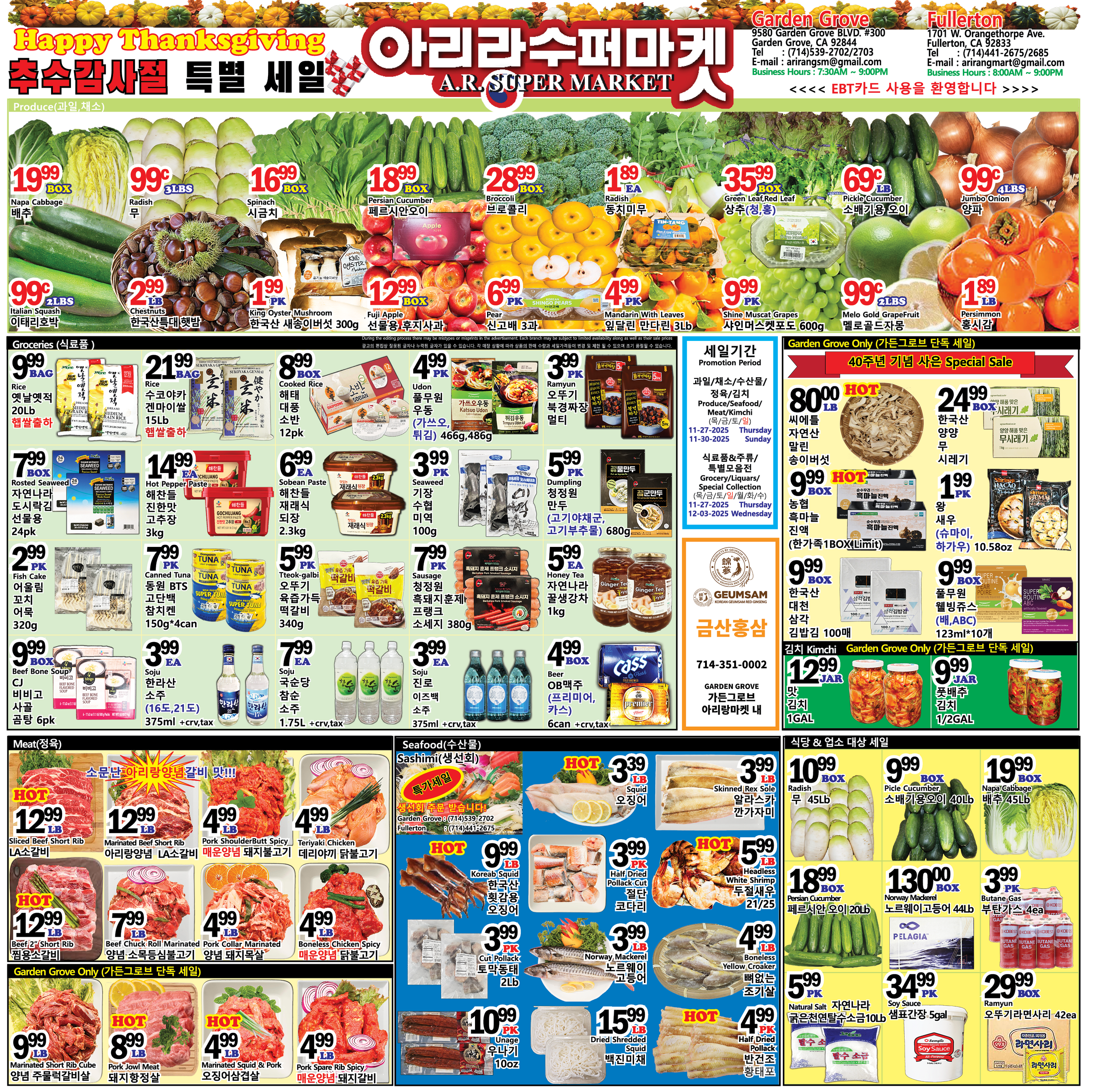 • 더 많은 정보를 원하시면 아래에 있는 아리랑수퍼마켓 세일정보 홈페이지를 방문하시기 바랍니니다.