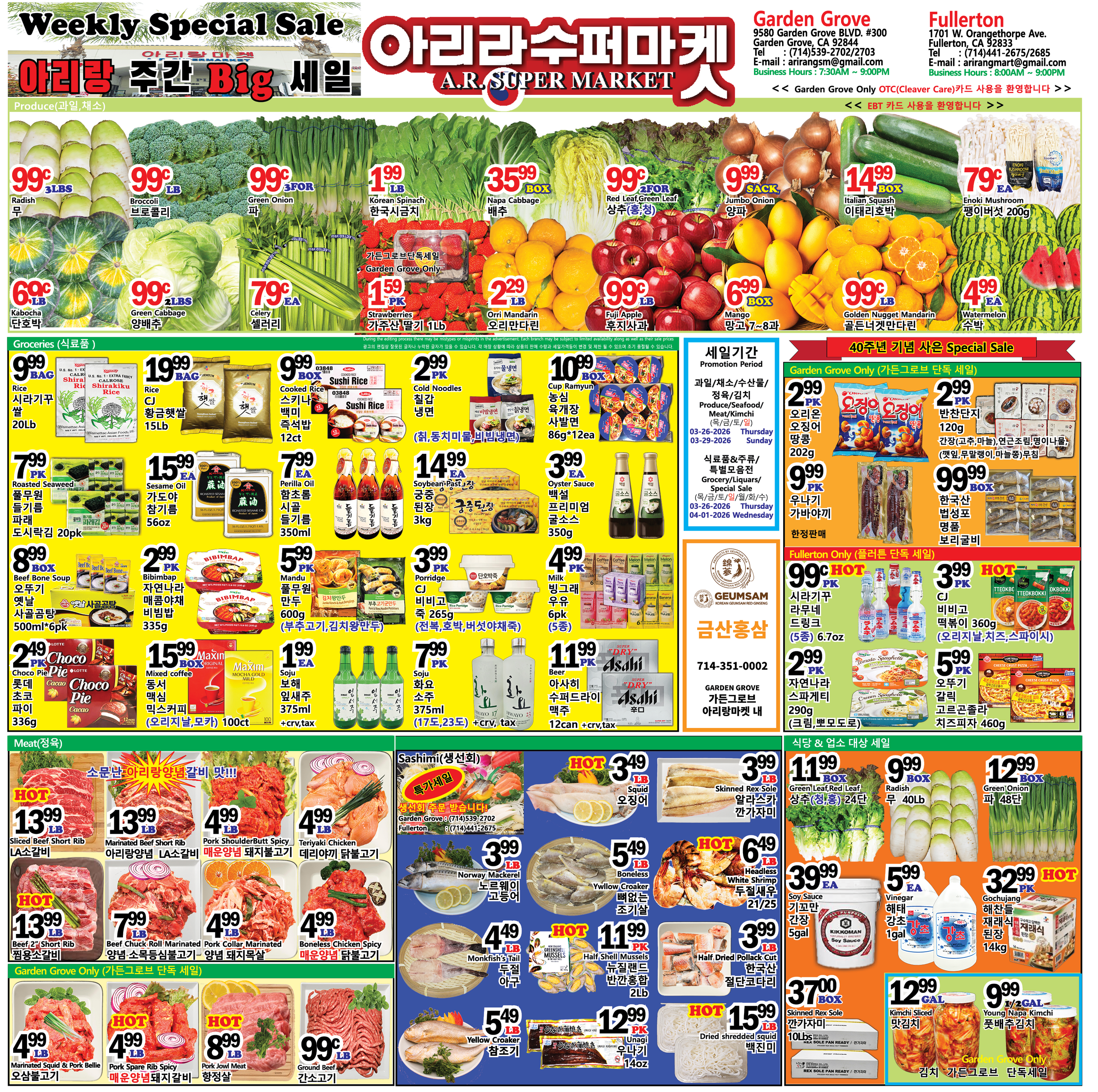 DISCLAIMERS: 이 전단지는 해당 마켓이 업로드한 것으로 내용에 대한 모든 책임은 해당마켓에 있으며, 이 내용을 본 후 결정한 판단에 대한 책임은 게시물을 본 이용자 본인에게 있습니다. 라디오코리아는 이 글에 대한 내용을 보증하지 않으며, 이 정보를 사용하여 발생하는 결과에 대하여 어떠한 책임도 지지 않습니다. 라디오코리아의 모든 게시물에 대해 게시자 동의없이 게시물의 전부 또는 일부를 수정 · 복제 · 배포 · 전송 등의 행위는 게시자의 권리를 침해하는 것으로 원칙적으로 금합니다. 이를 무시하고 무단으로 수정 · 복제 · 배포 · 전송하는 경우 저작재산권 침해의 이유로 법적조치를 통해 민, 형사상의 책임을 물을 수 있습니다. This listing is posted by the market and all the responsibility for the contents lies with the market. The user is responsible for the judgments made after viewing the contents. Radio Korea does not endorse the contents of this article and assumes no responsibility got the consequences of using the information. In principle, all posts in Radio Korea are prohibited from modifying, copying, distributing, and transmitting all or part of the posts without the consent of the publisher. Any modification, duplication, distribution, or transmission without prior permission can subject you to civil and criminal liability.