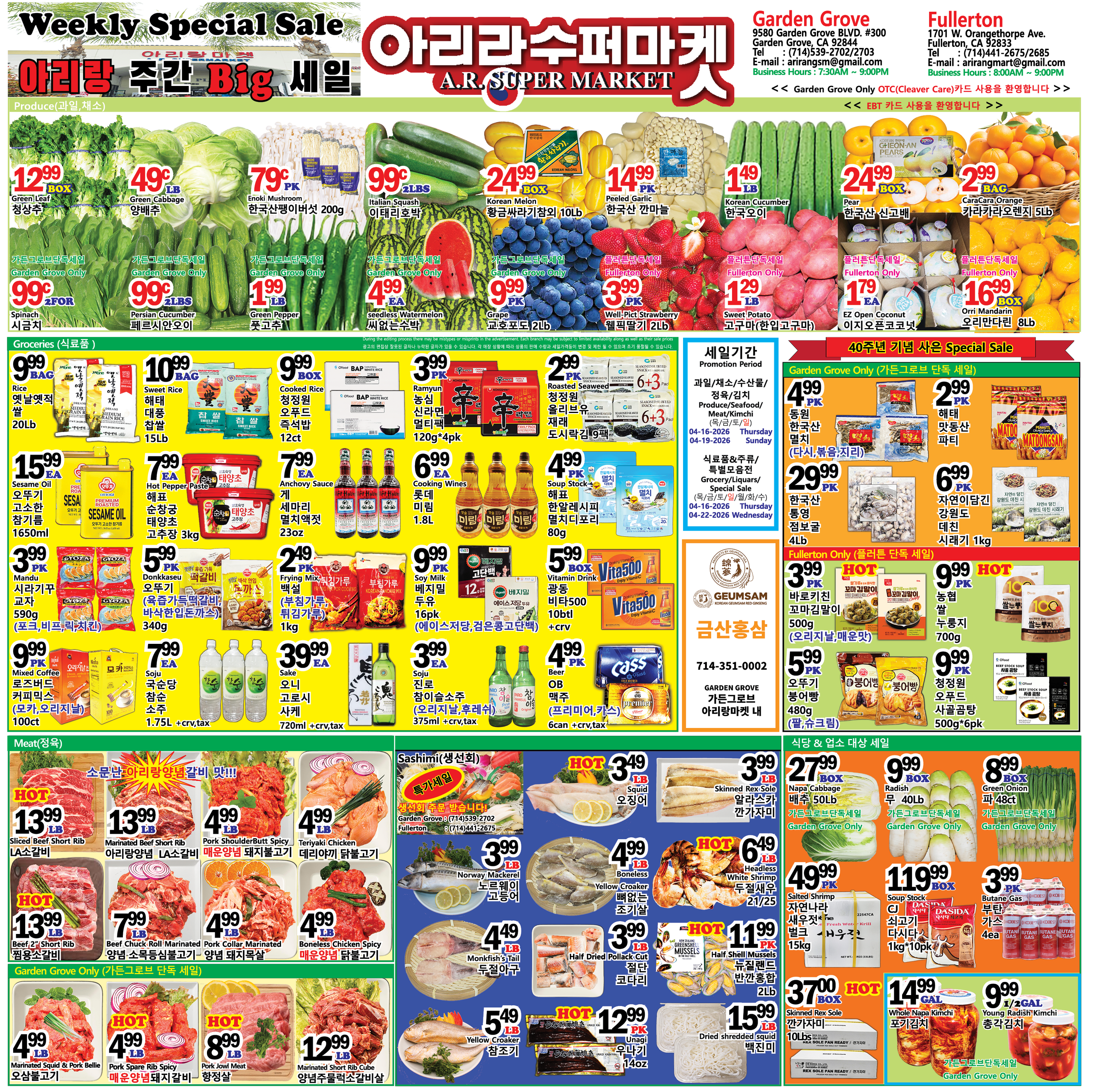 • 더 많은 정보를 원하시면 아래에 있는 아리랑수퍼마켓 세일정보 홈페이지를 방문하시기 바랍니니다.