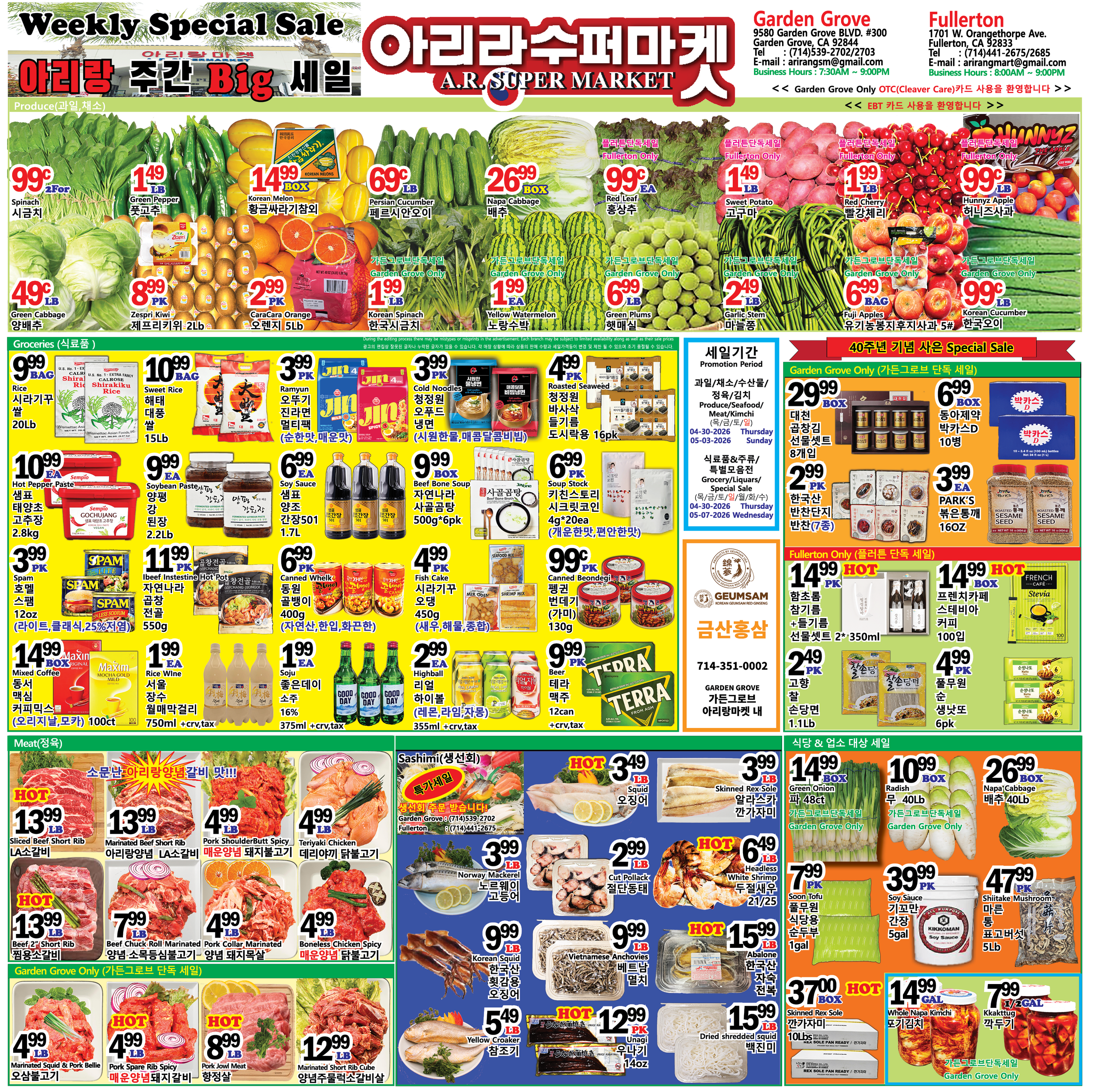 • 더 많은 정보를 원하시면 아래에 있는 아리랑수퍼마켓 세일정보 홈페이지를 방문하시기 바랍니니다.