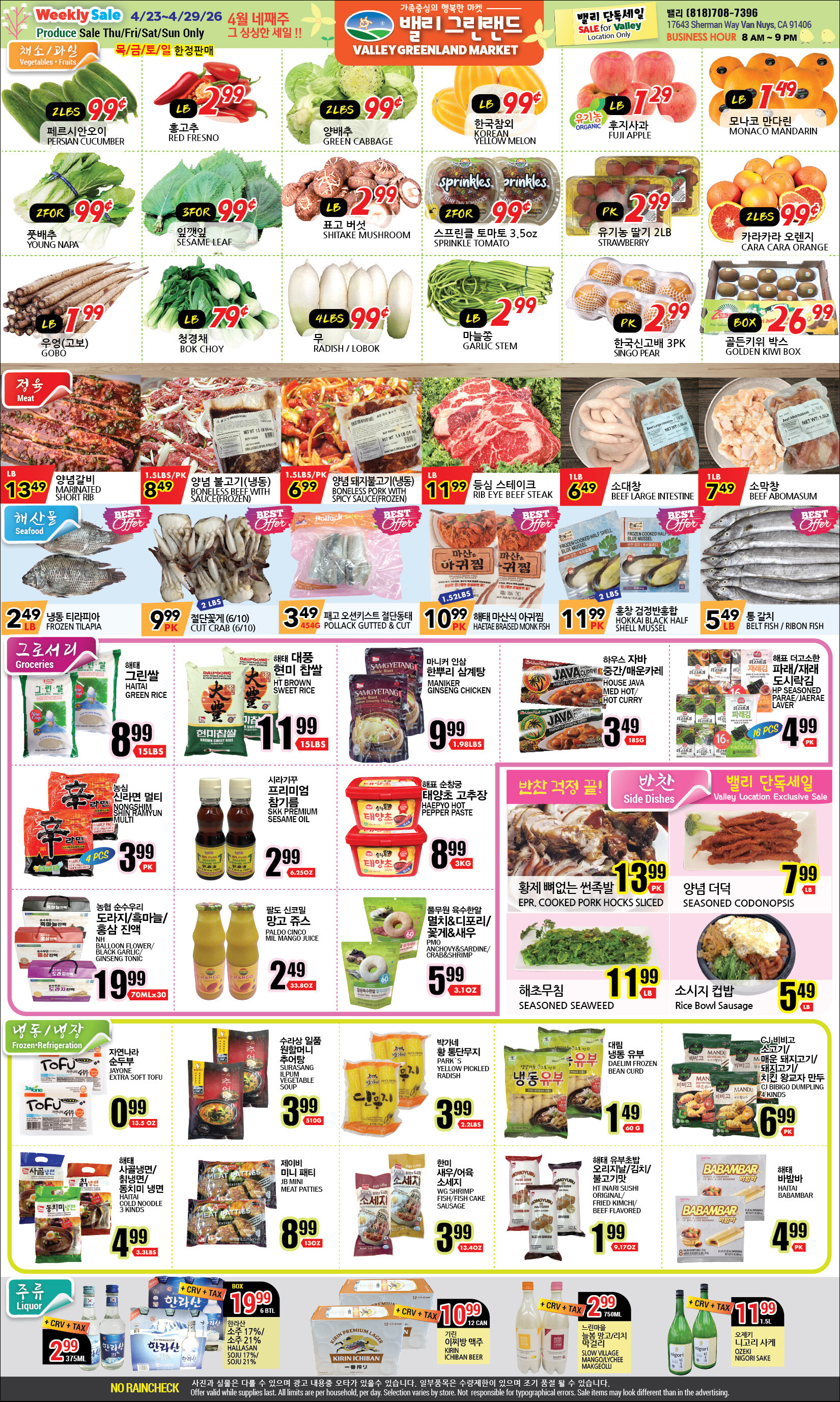 밸리 단독 그린랜드 마켓 4월 네째 주 그 싱싱한 세일 !!