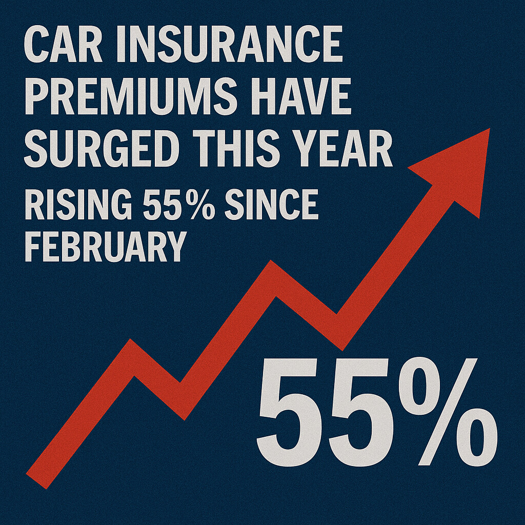 올해 자동차 보험료 급등, 2월 이후 55% 상승