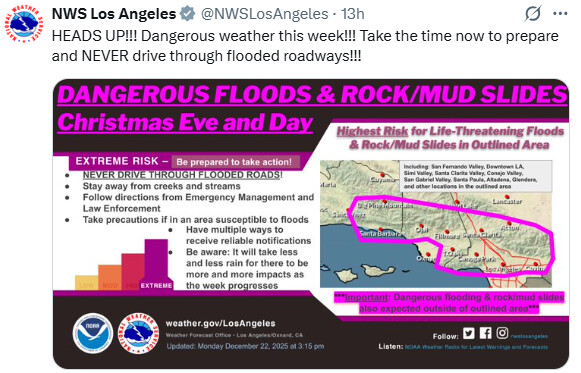 북가주를 강타한 기록적인 폭우로 인명 피해가 발생한 가운데, 강력한 겨울 폭풍이 남가주로 남하하면서 주민들의 각별한 주의가 요구되고 있다. 지난 일요일, 북가주 레딩(Redding) 시에서는 불과 몇 시간 만에 5인치가 넘는 폭우가 쏟아지면서 70대 남성이 차량에 갇혀 숨…