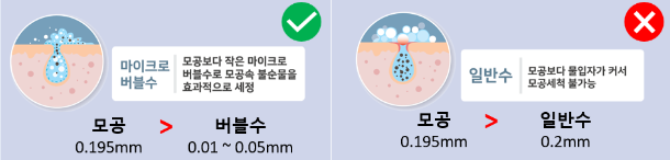 수압과 공기만을 활용해 생성되는 미세 입자는 일반 수돗물 입자보다 작은 크기로형성되며, 피부 노폐물 제거와 촉촉한 사용감을 동시에 제공한다.