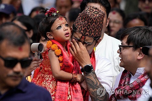 네팔에서 이른바 '살아 있는 여신'으로 불리며 힌두교도와 불교도의 숭배를 동시에 받는 새 '쿠마리'로 2살 여자아이가 뽑혔다.