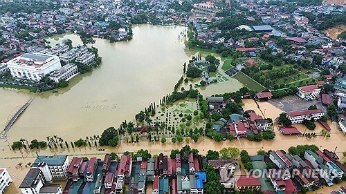홍수로 물에 잠긴 베트남 북부 라오까이성 시가지