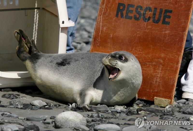 2008년 미국 해양동물 재활센터에서 방사되는 물범